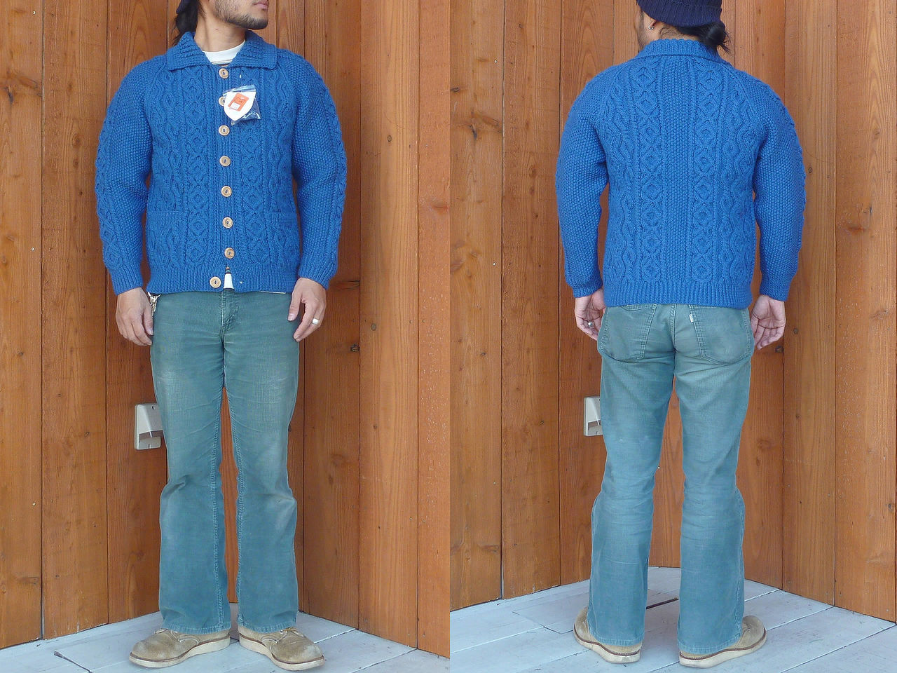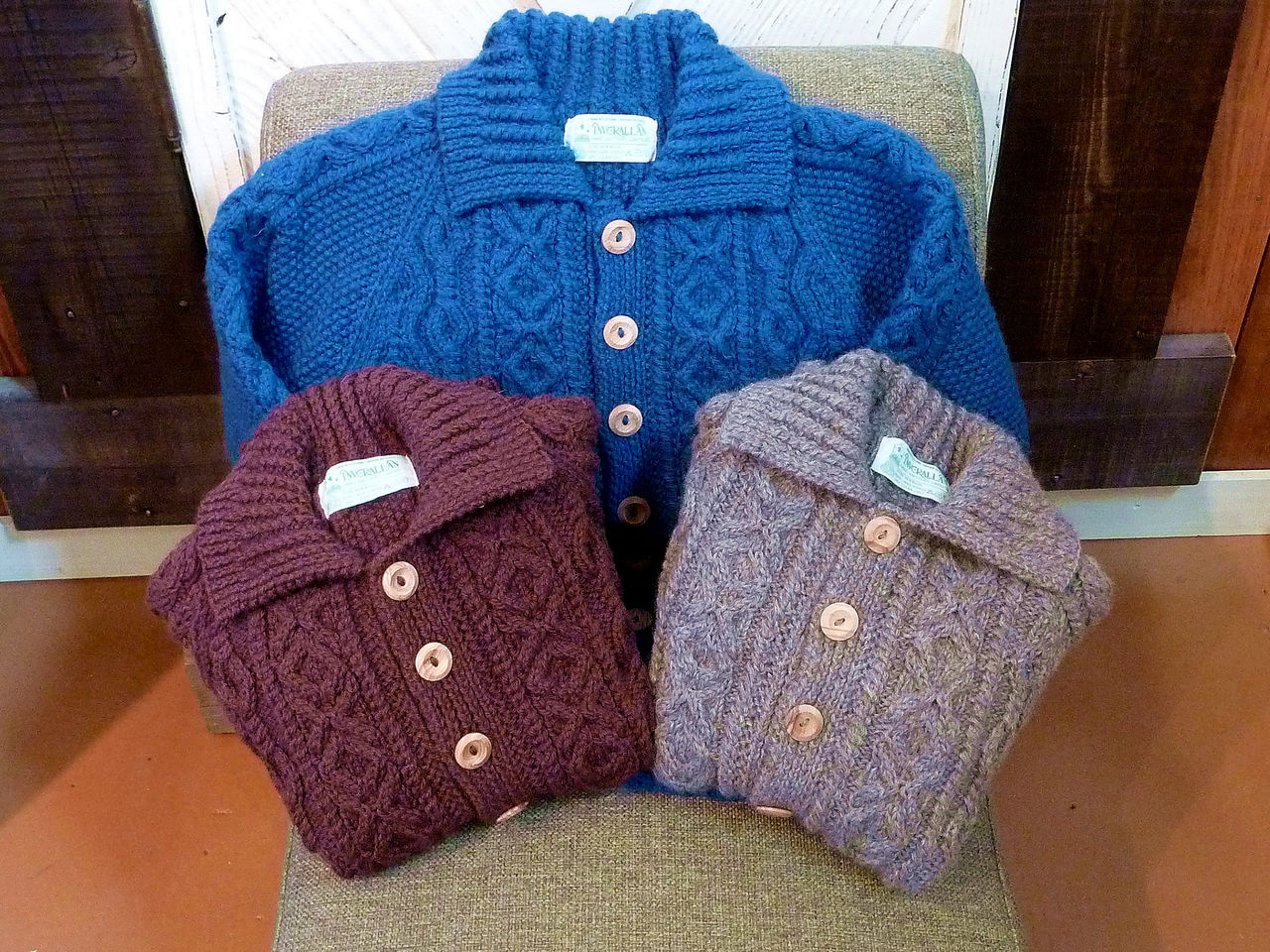 独自のニッティングパターンと、最高級のアラン糸を使用した、最高級ニットカーディガンです。