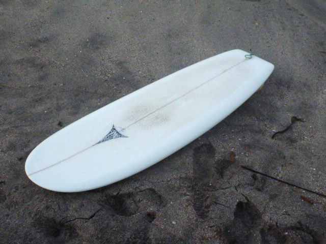 本日は、お気に入りのANDREINI MINI SIMMONSの登場。腰〜腹前後の波でも、幅のあるテイルがしっかりとウネリを捉え、早いテイクオフから気持ちよく波のフェイスを走ってくれます。