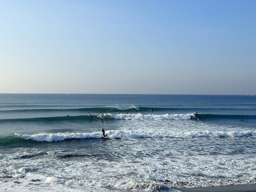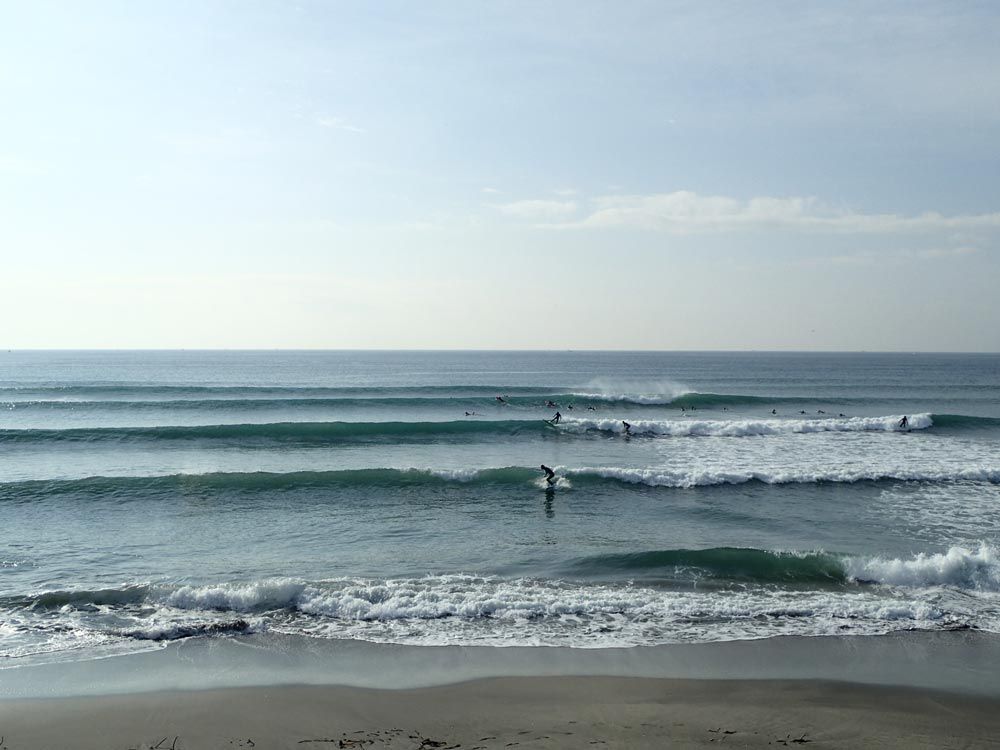 セット間隔は長いものの、胸ぐらいのウネリが入る本日の湘南。