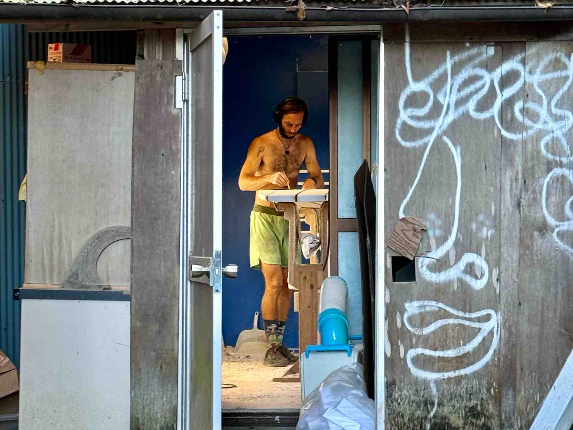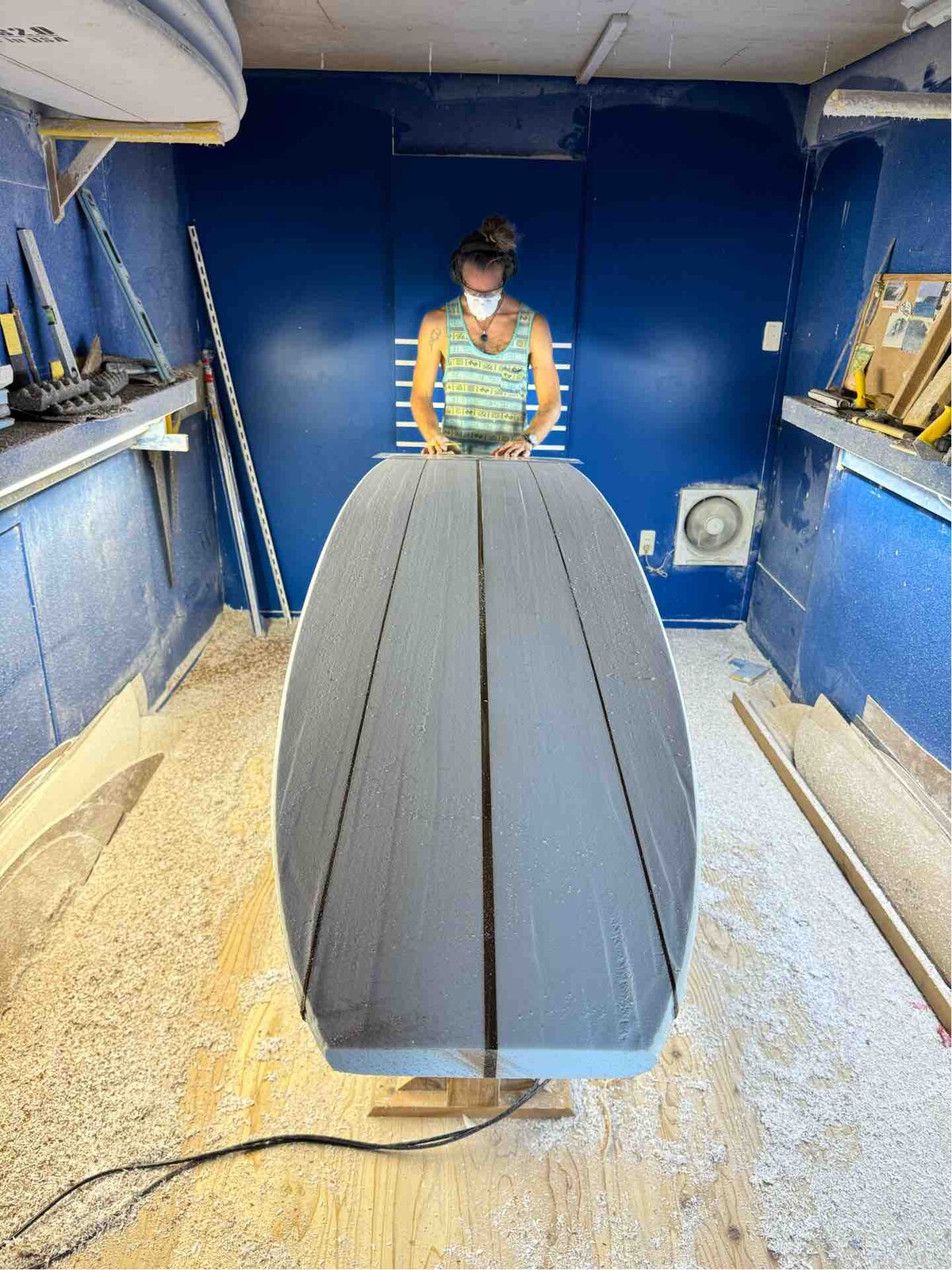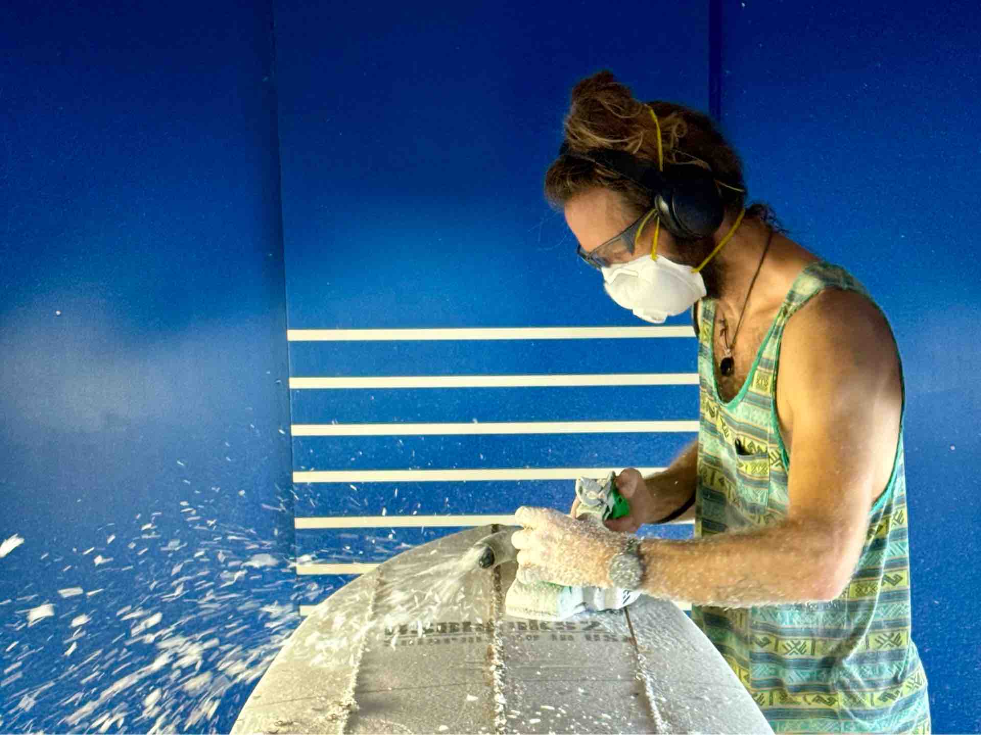 そう、プレーナーで仕上げた彼のボードを