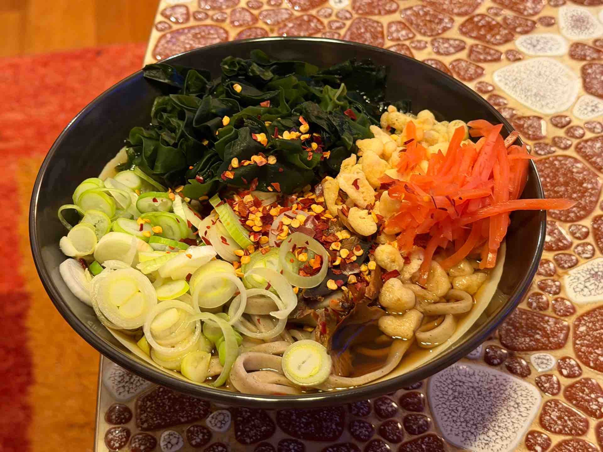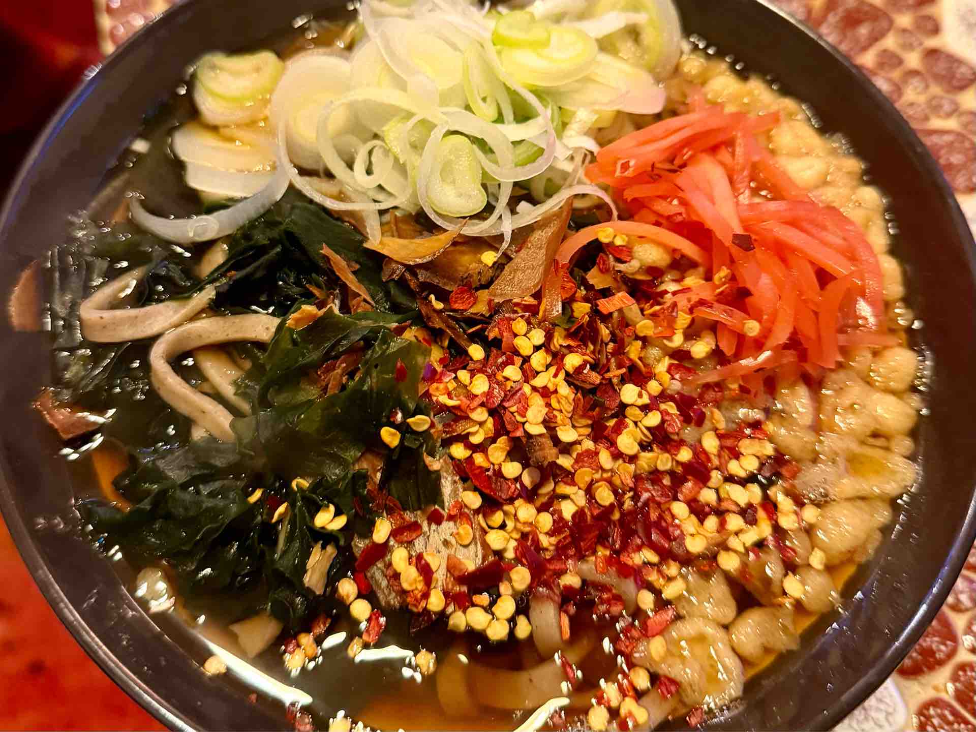 ホリ由の定番はこんな感じで、具は、天かす、紅生姜、わかめ。