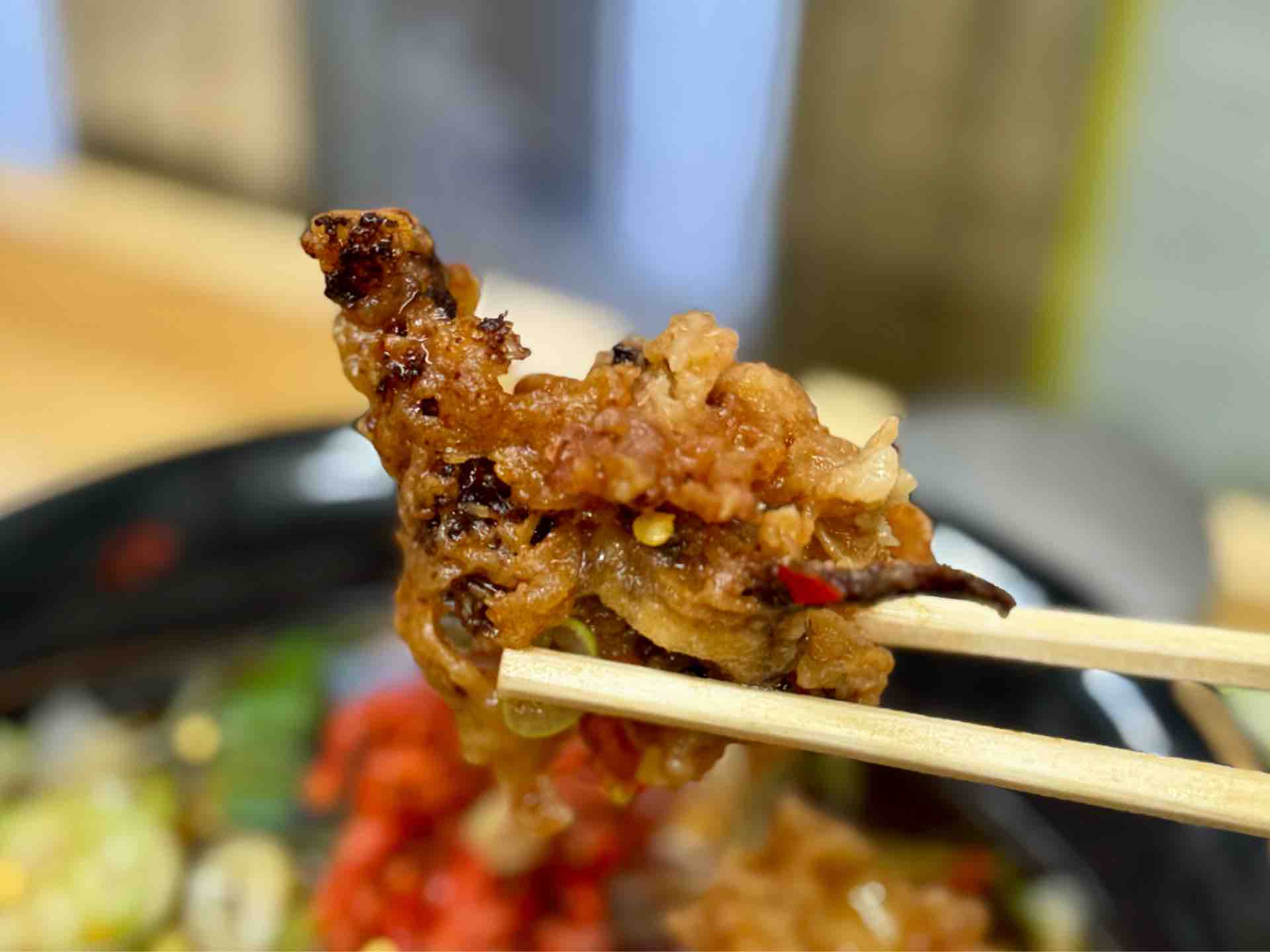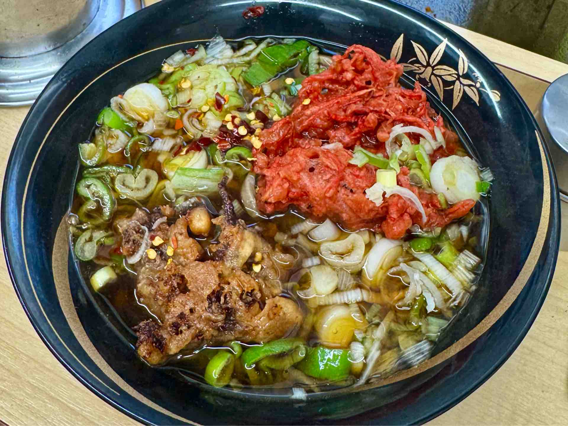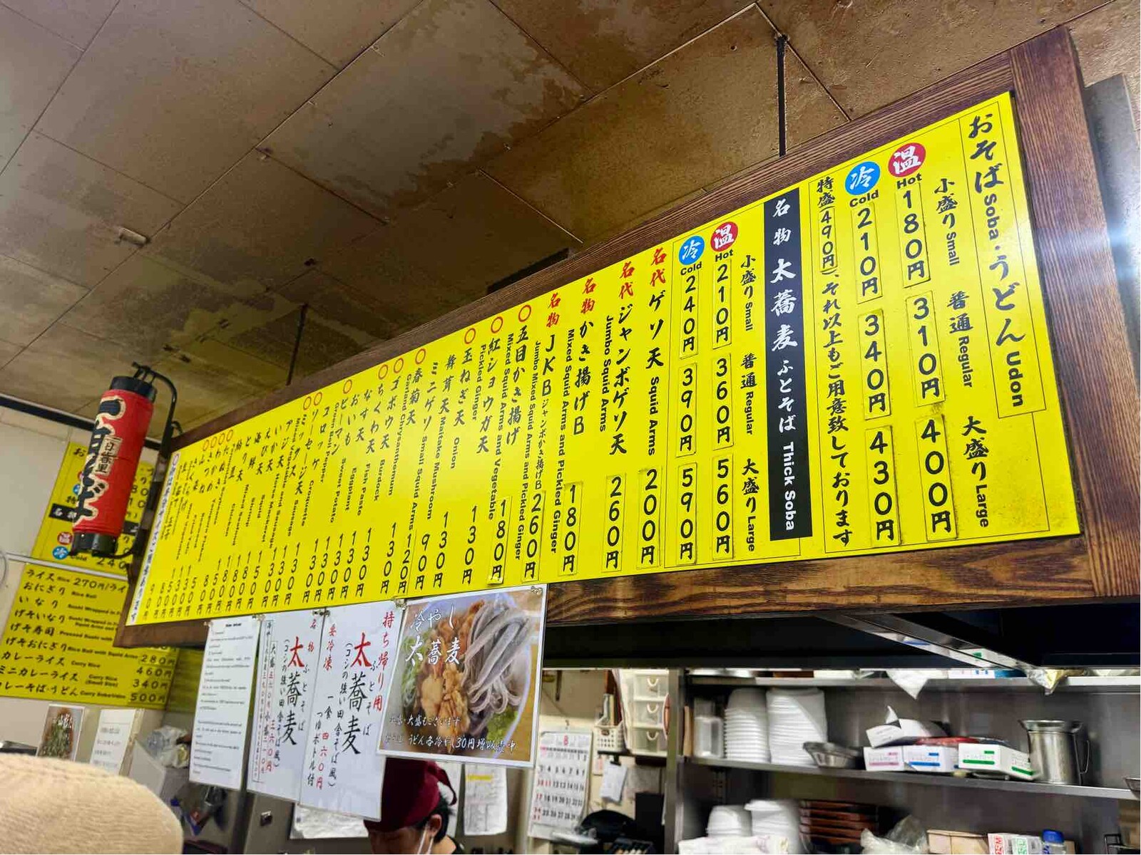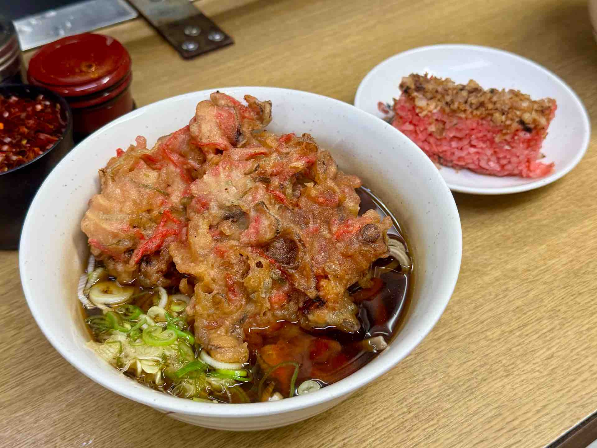 当然、食べたのは太蕎麦にゲソ天と紅生姜天。