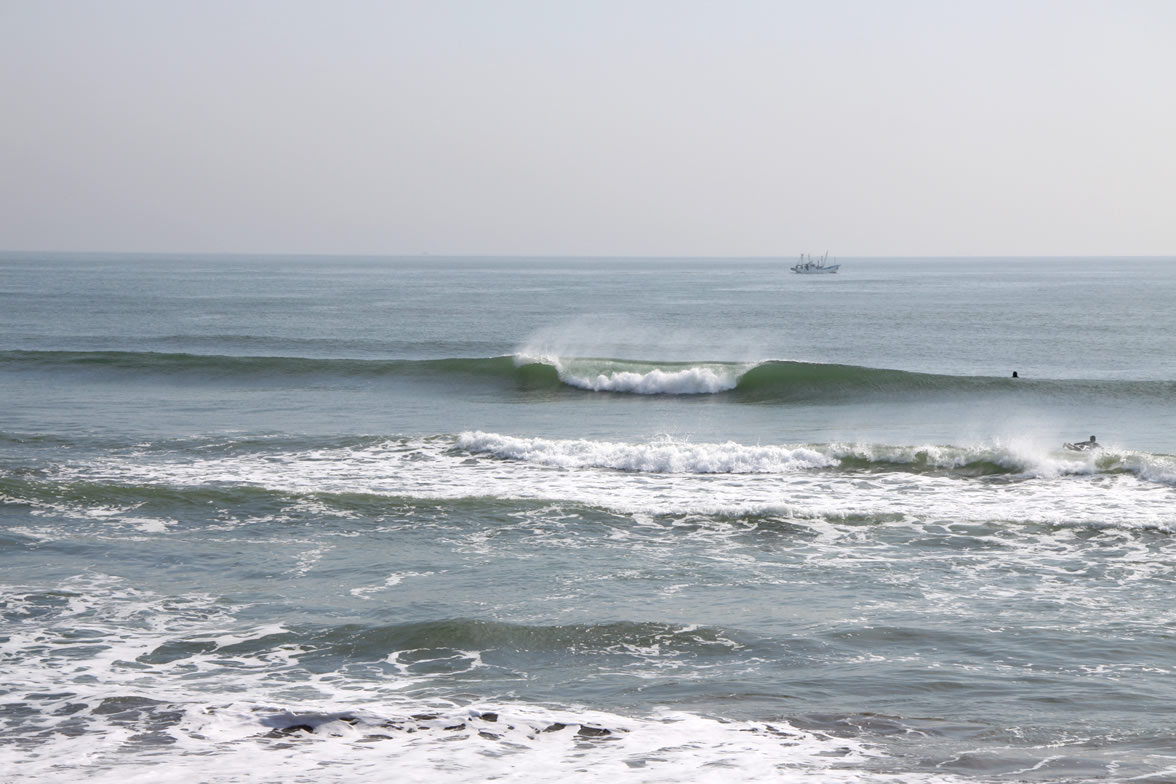 波の方は、朝一から昼過ぎまで、軽いオフショアが吹く程度で、面はツルツル。