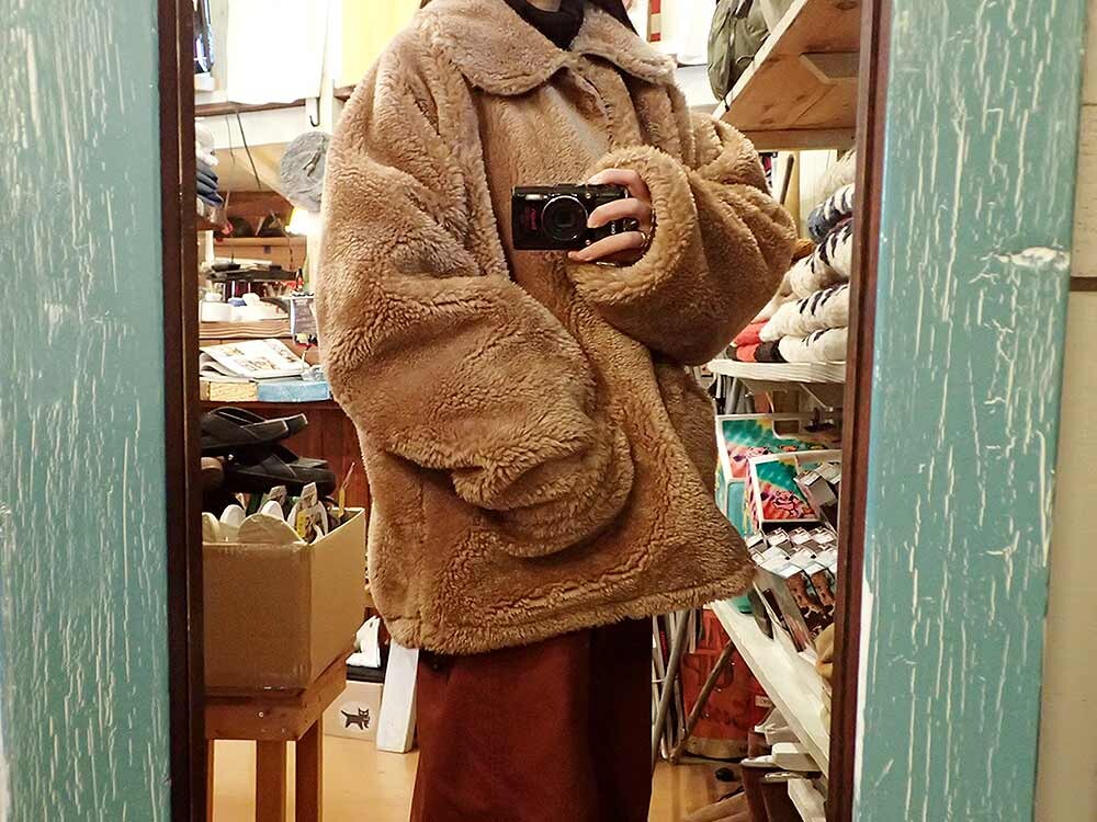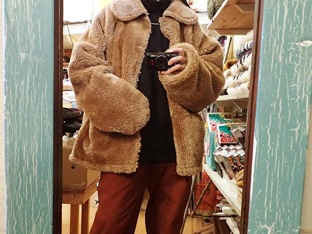 ボア付きアウターは、見た目も暖かい。