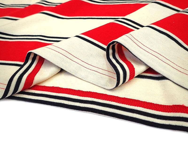コットンとポリエステルをボーダー状に丸胴編みにし、