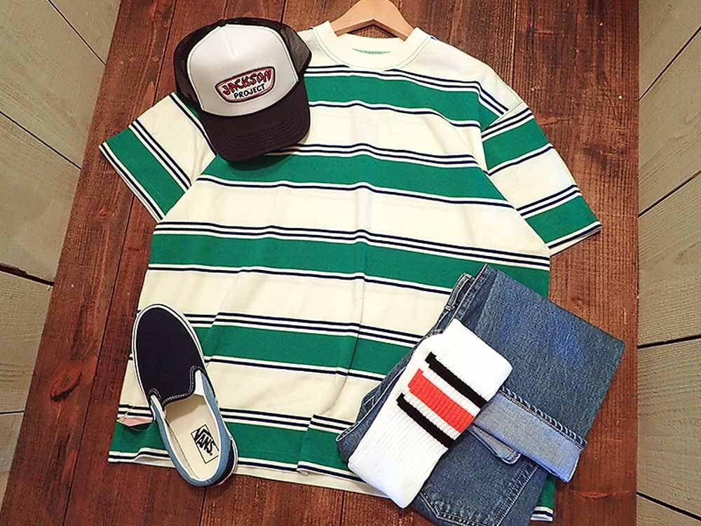 レトロタッチな配色が魅力のボーダーTシャツ。