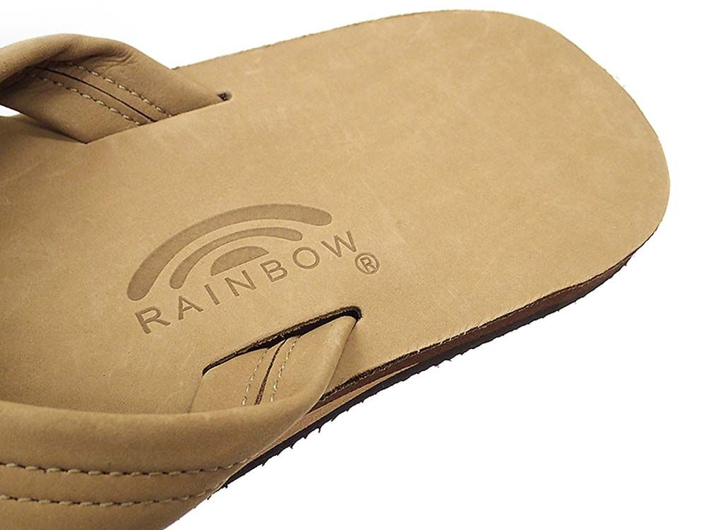 レインボーサンダルロゴの型押ヌバック革の