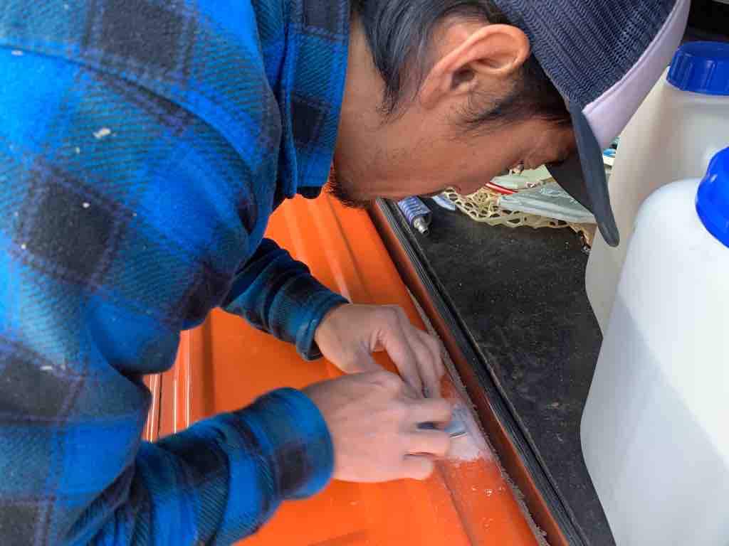 パテが乾いたら面取り作業。