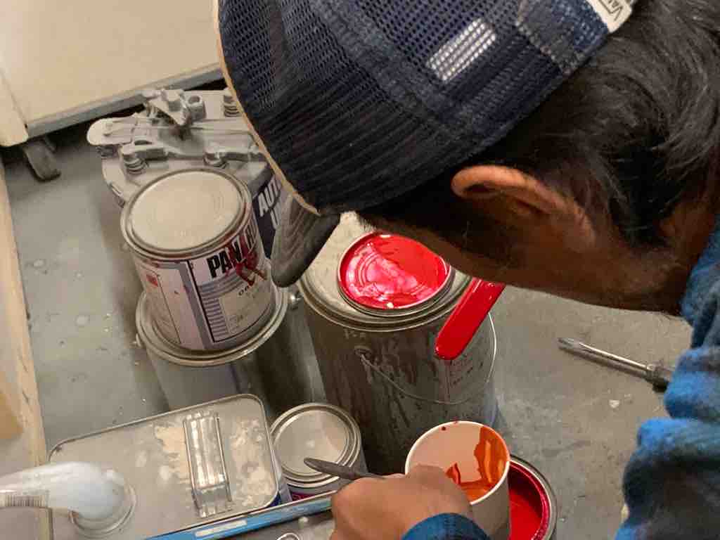 パテが乾くまでに、塗料の調色。