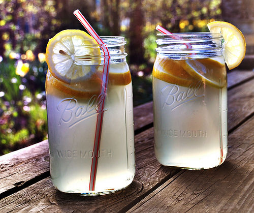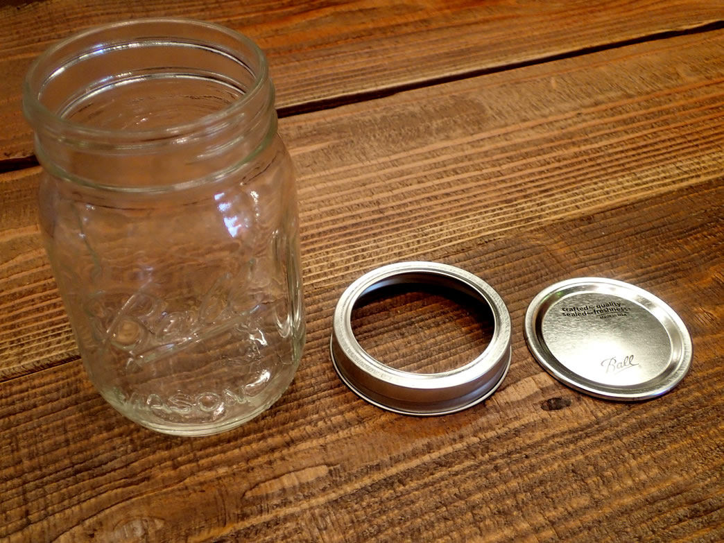 Ball社のガラス製メイソンジャーとドリンキングマグ。